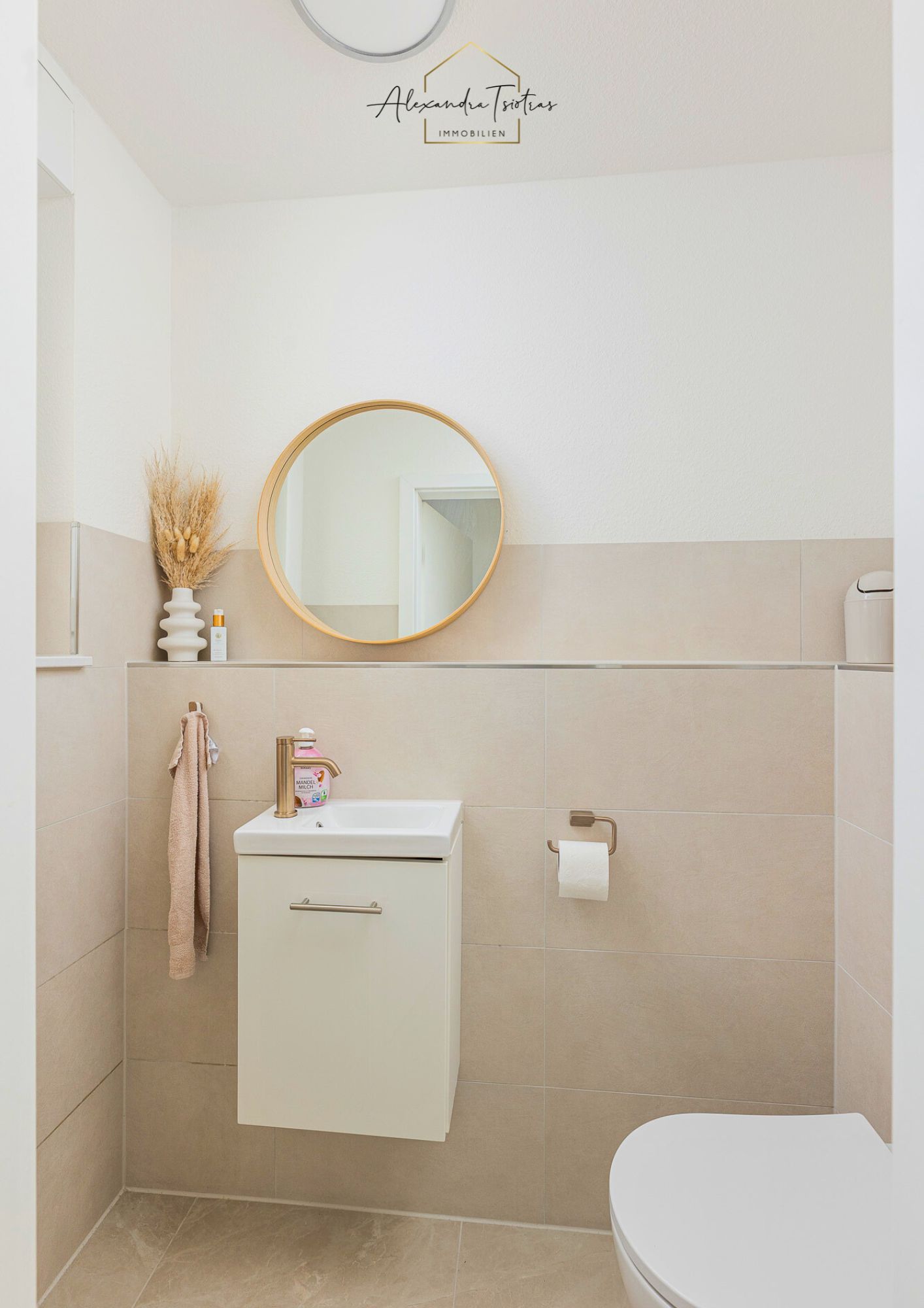 Die hochwertigen Fliesen durchziehen sich einheitlich durch die Räumlichkeiten im Haus. Beheizt wird über eine Fußbodenheizung, deren Wärme angenehm und effizient ist und dabei zudem noch Platz spart. Die Fußbodenheizung lässt sich in jedem Raum individuell steuern und sorgt für ein behagliches Wohngefühl.