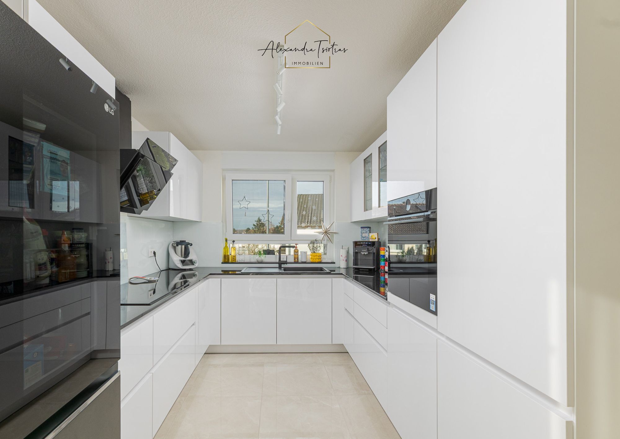 Die hochwertige, moderne Nolte Einbauküche ist ein weiteres Highlight. Weiße Hochglanzfronten, edle Glasrückwände und die Granit Arbeitsplatte dürfen guten Gewissens als Eyecatcher bezeichnet werden. Marken Einbaugeräte und ganz viel Stauraum sind nur ein paar Punkte, die das Herz eines jeden Hobbykochs höherschlagen lassen. Vorräte, Backformen und alles, was im typischen Familienalltag benötigt wird, findet in der danebenliegenden Vorratskammer einen Platz. Es wird Sie ebenfalls freuen, dass die gepflegte Küche mitsamt der Marken Elektrogeräte Teil des Angebotes ist und Sie für eine neue Küche nicht noch ein kleines Vermögen einplanen müssen.