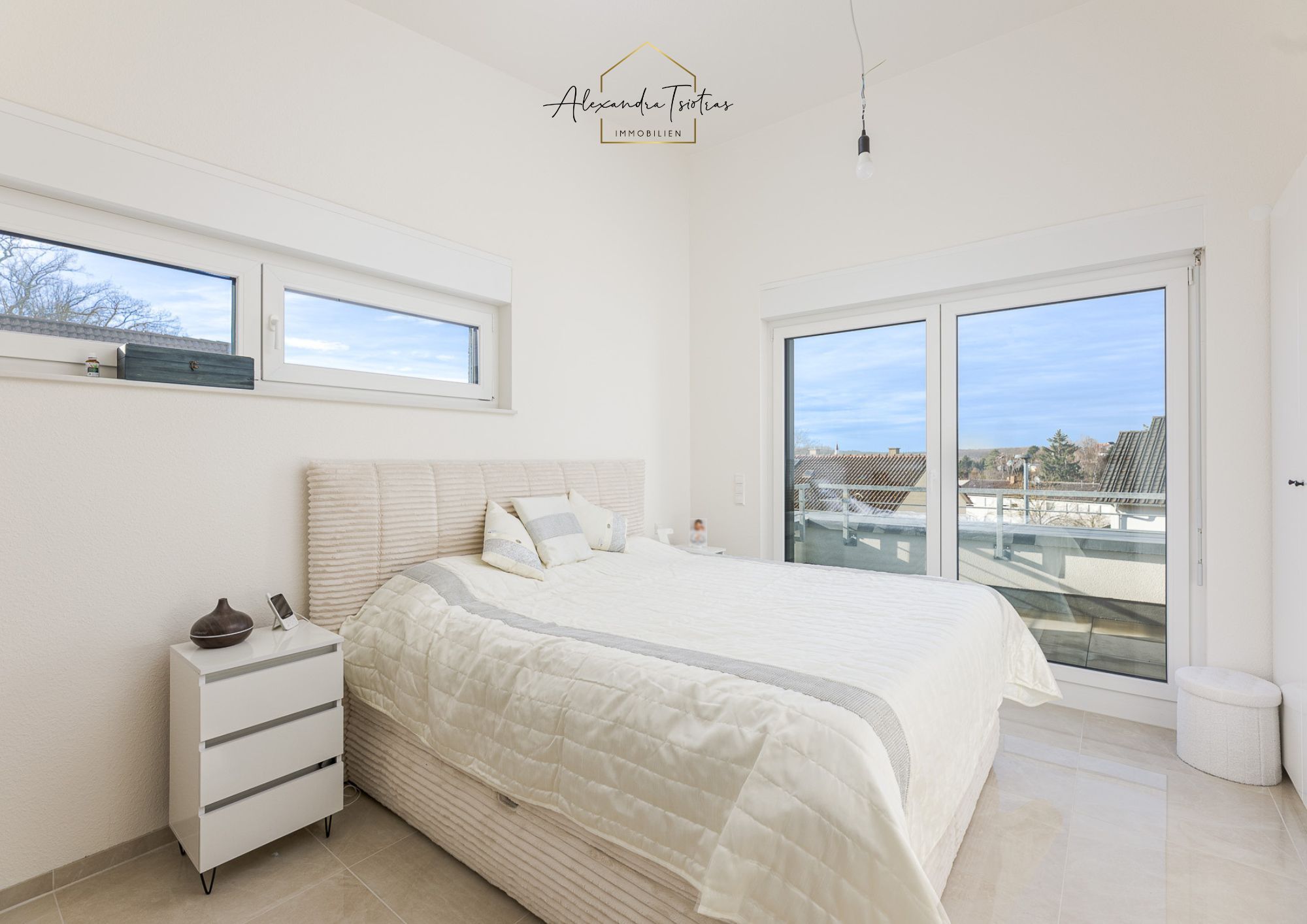 Die Vereinigung zweier Refugien gelingt im Schlafzimmer. Optimalste Bedingungen für Entspannung und Erholung auf 14 m². Kurz mal eben einen Schritt ins Freie tun und die frische Luft und die Aussicht genießen - das ist das Wunderschöne an einem Schlafzimmer mit Terrasse.