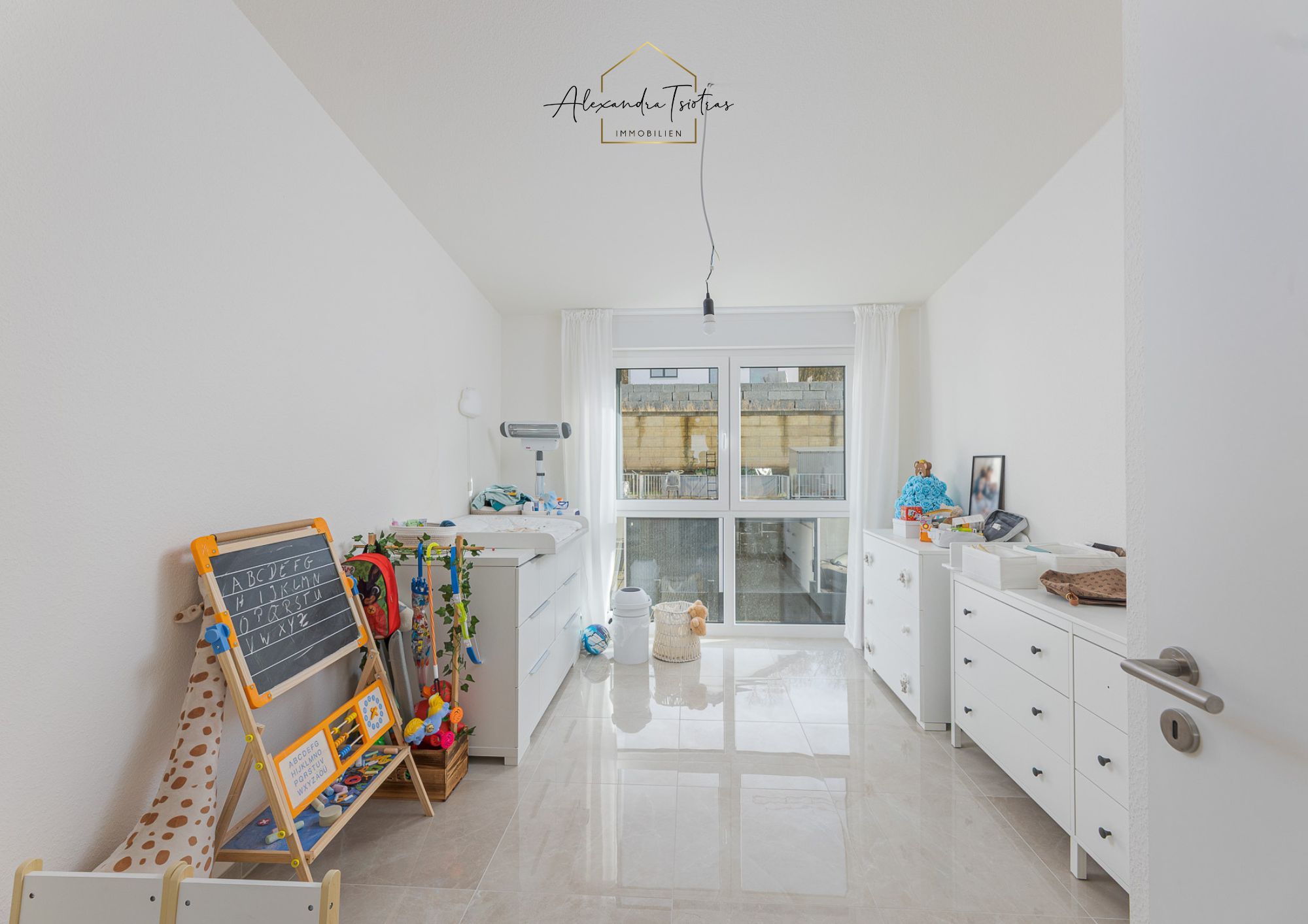 Hier befindet sich das moderne Badezimmer, zwei Kinderzimmer und das Schlafzimmer mit Terrasse.