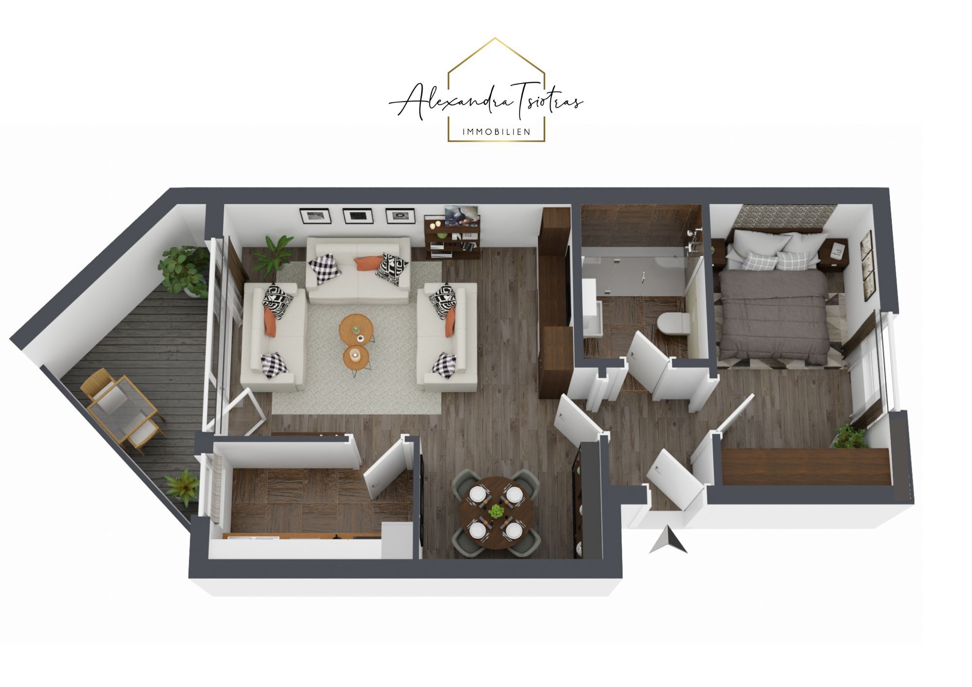 Das lichtdurchflutete Wohn-Esszimmer mit angrenzender Küche bildet das zentrale Element der Wohnung und bietet Platz für eine gemütliche Sitzecke sowie einen Essbereich. Vom Wohnzimmer besteht Zugang zum überdachten Süd-Balkon, der durch die Überdachung das ganze Jahr über nutzbar ist.