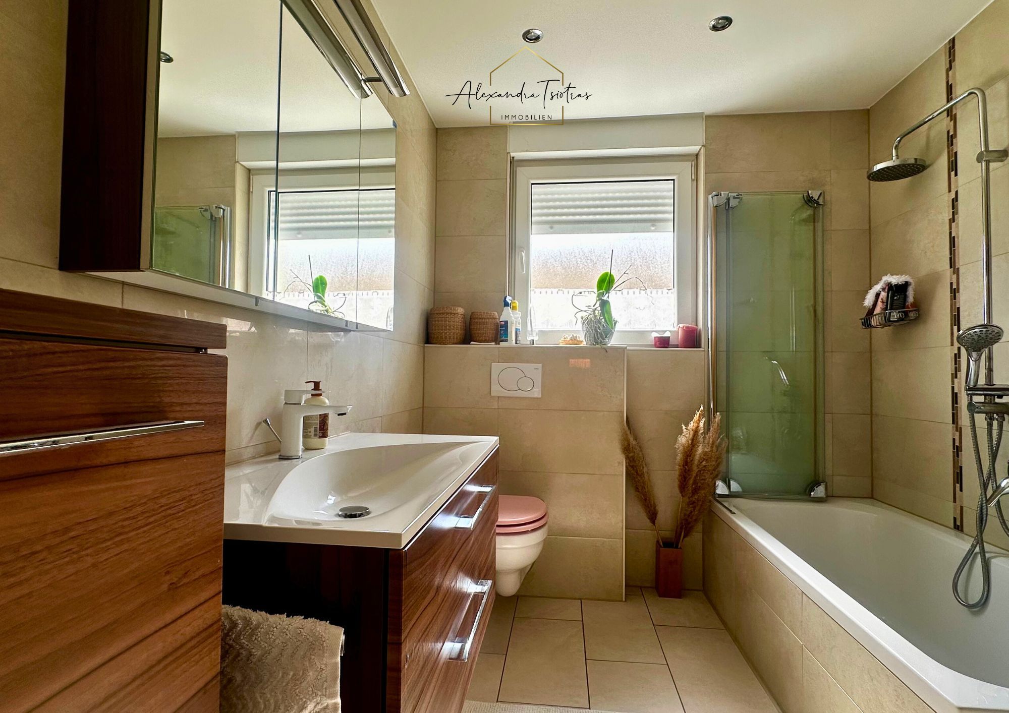 ++ modernes Tageslichtbad mit Wanne, Waschtisch und WC