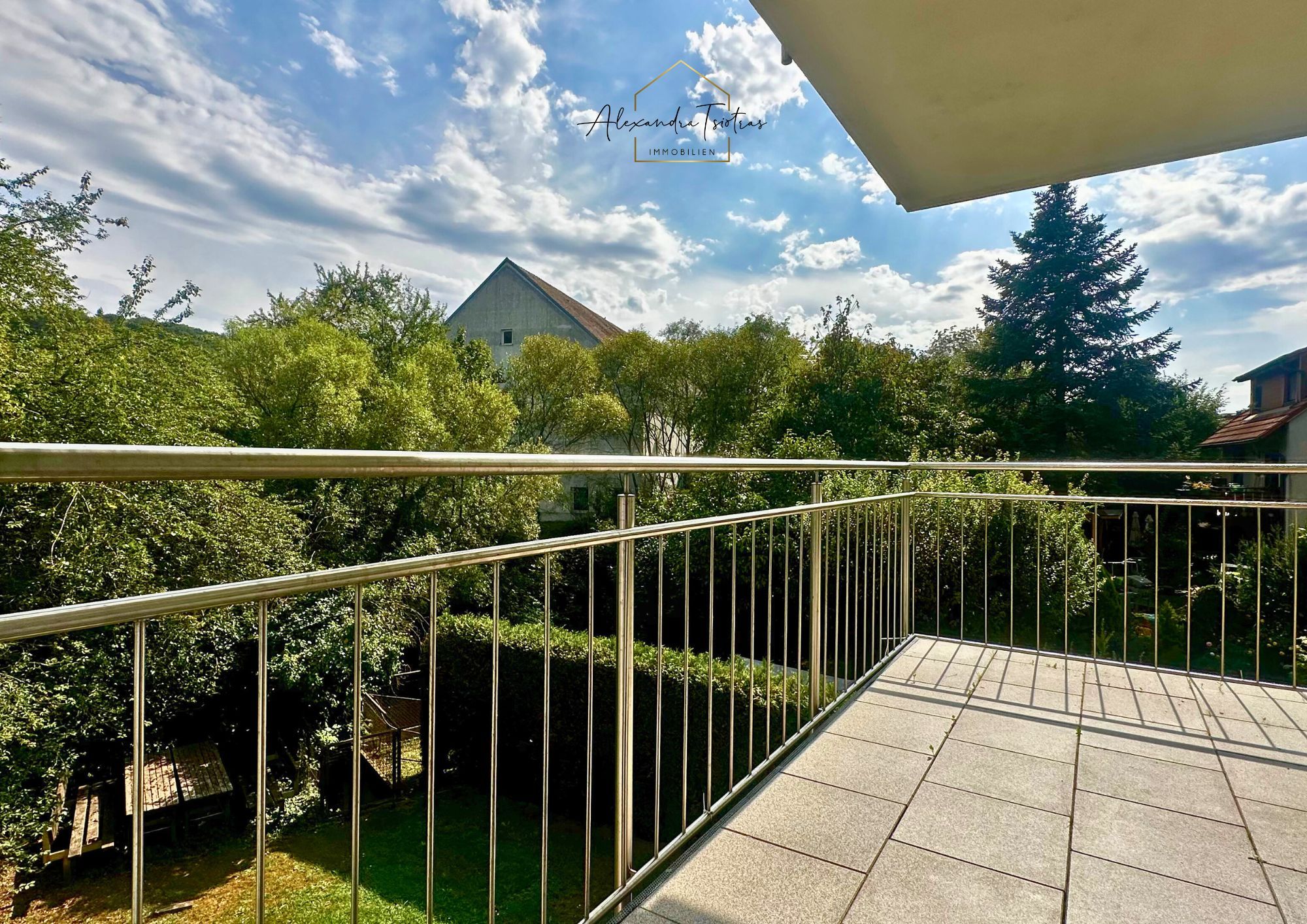Herzstück der Wohnung ist der großzügige Wohn- und Essbereich mit angrenzendem Balkon und Blick ins Grüne. Hier lässt sich ein großer Esstisch ebenso wie eine komfortable Wohnlandschaft wunderbar platzieren. Direkt neben dem Essbereich finden Sie die großzügige Einbauküche mit Sitzgelegenheit.